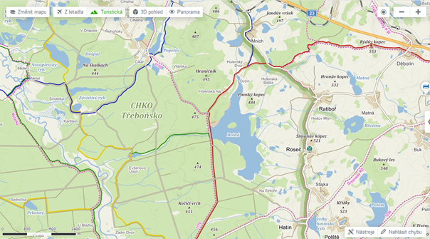 Turistická mapa v aplikaci Mapy.cz může zobrazit nejen terénní model pomocí vrstevnic, ale také například hranice CHKO nebo Národních parků (foto Mapy.cz)